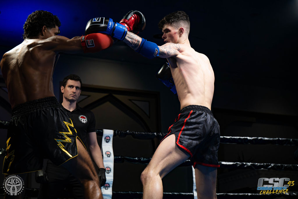 One of the headline bouts for CSC 43 featured a WKA Intercontinental Title showdown between Manny Fernandez of East Side Muay Thai (Virginia, USA) and Cameron Miller of Robertson’s Martial Arts (Scotland).